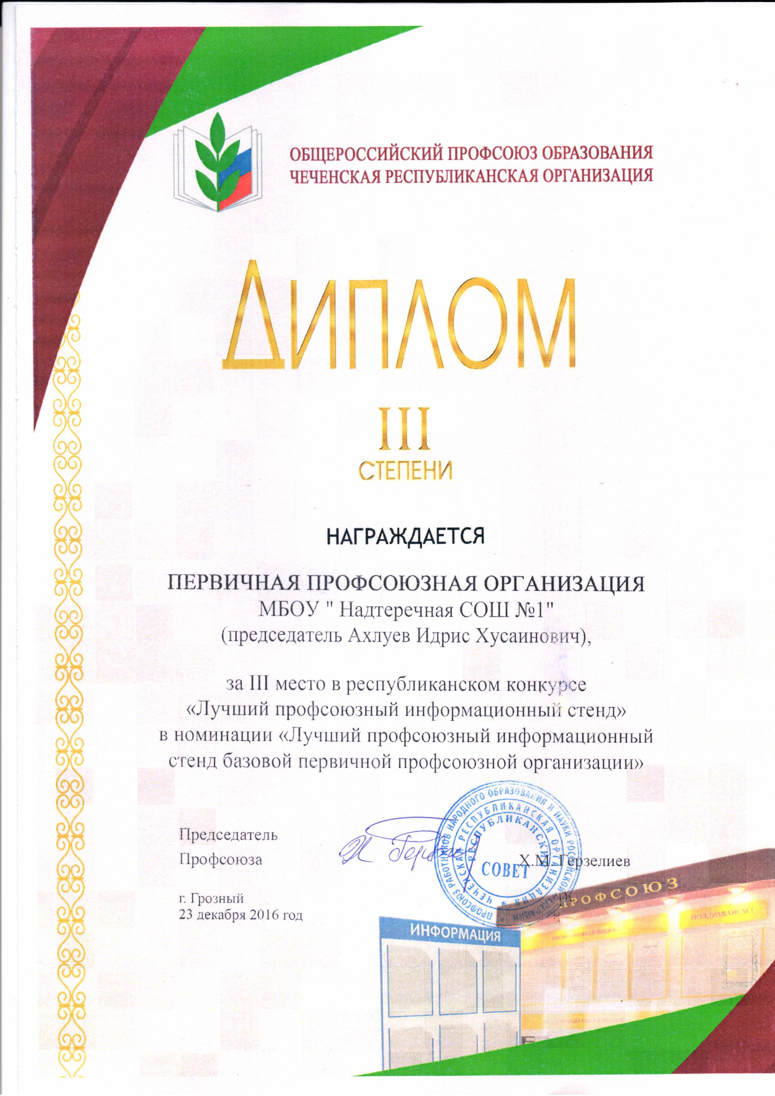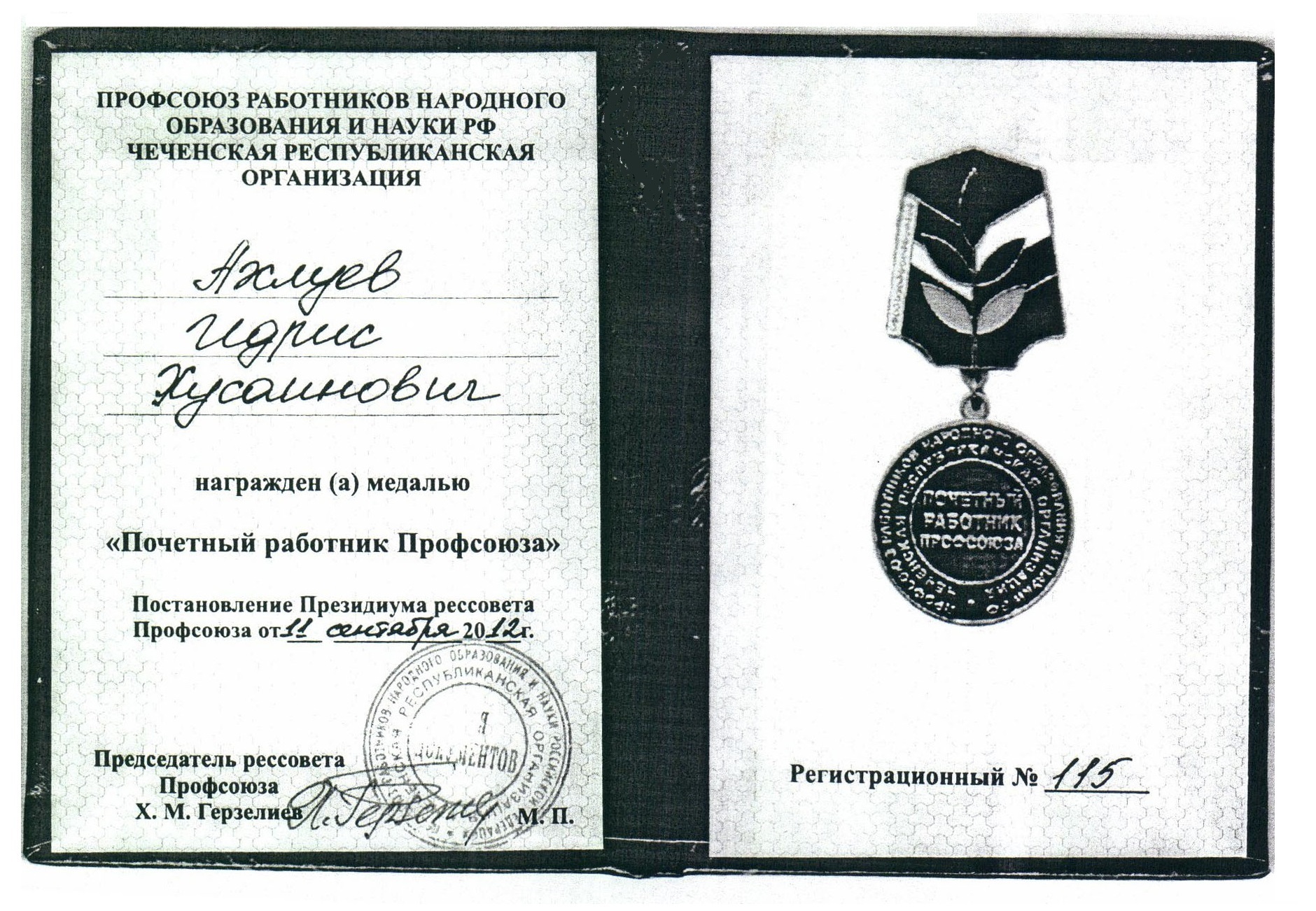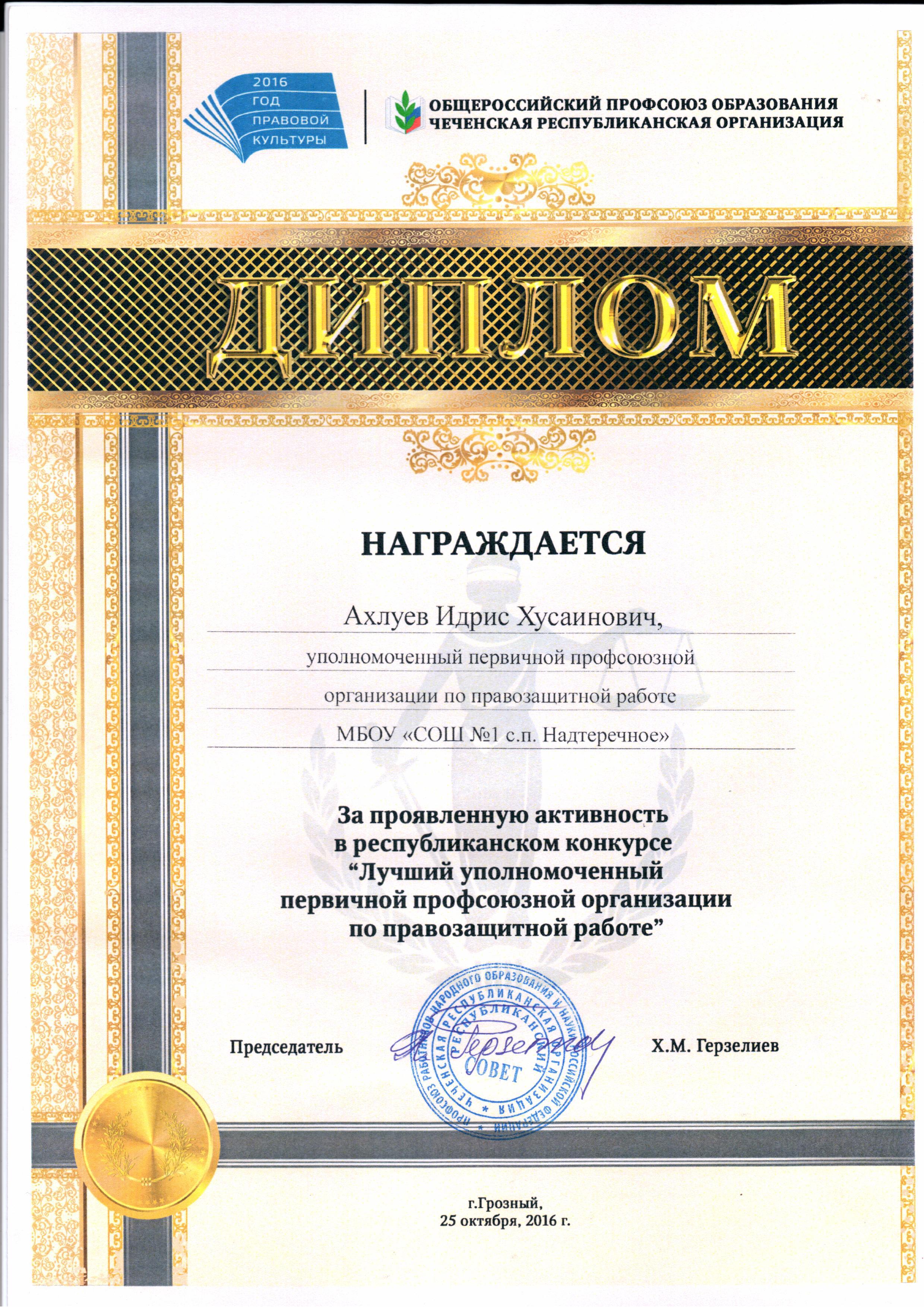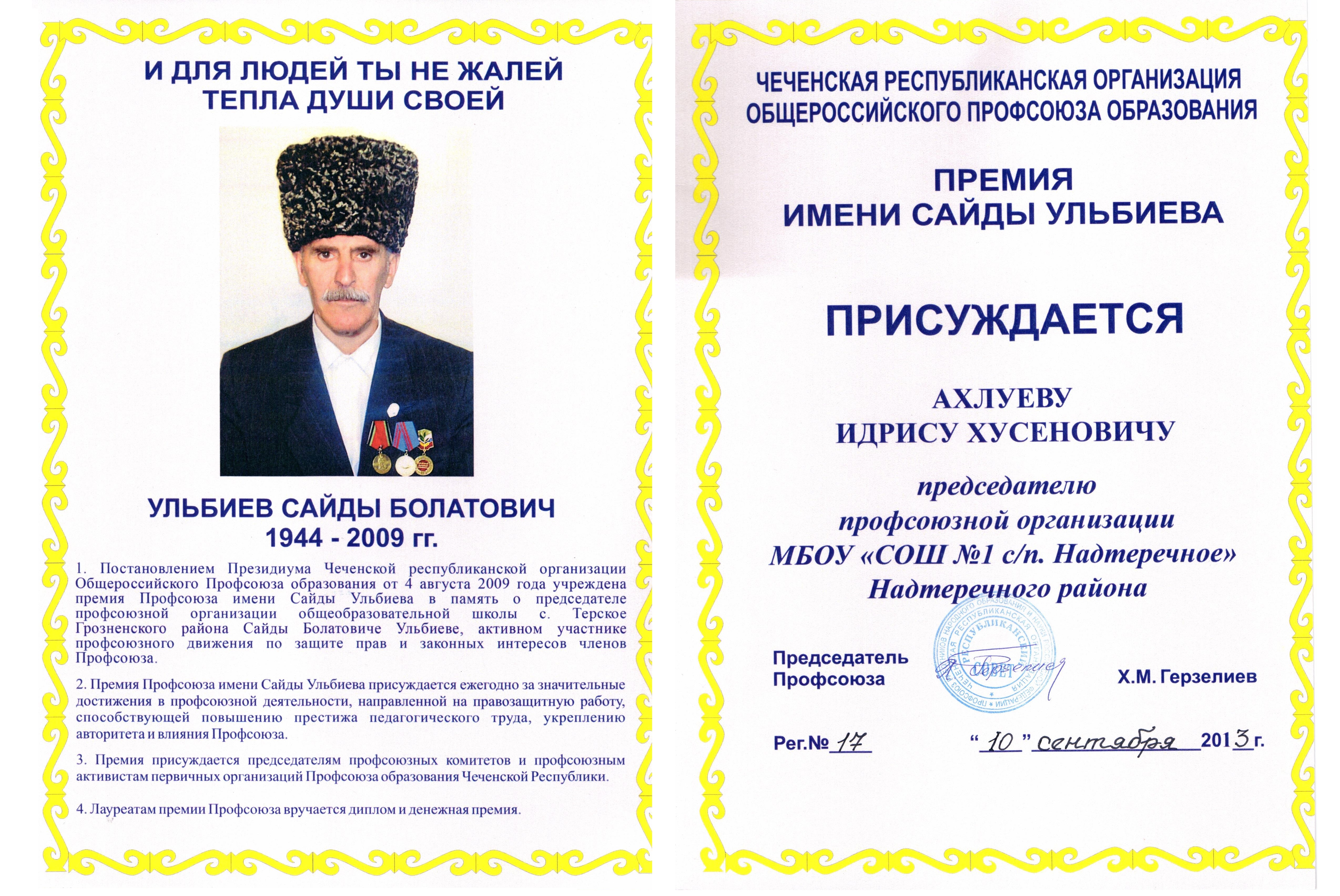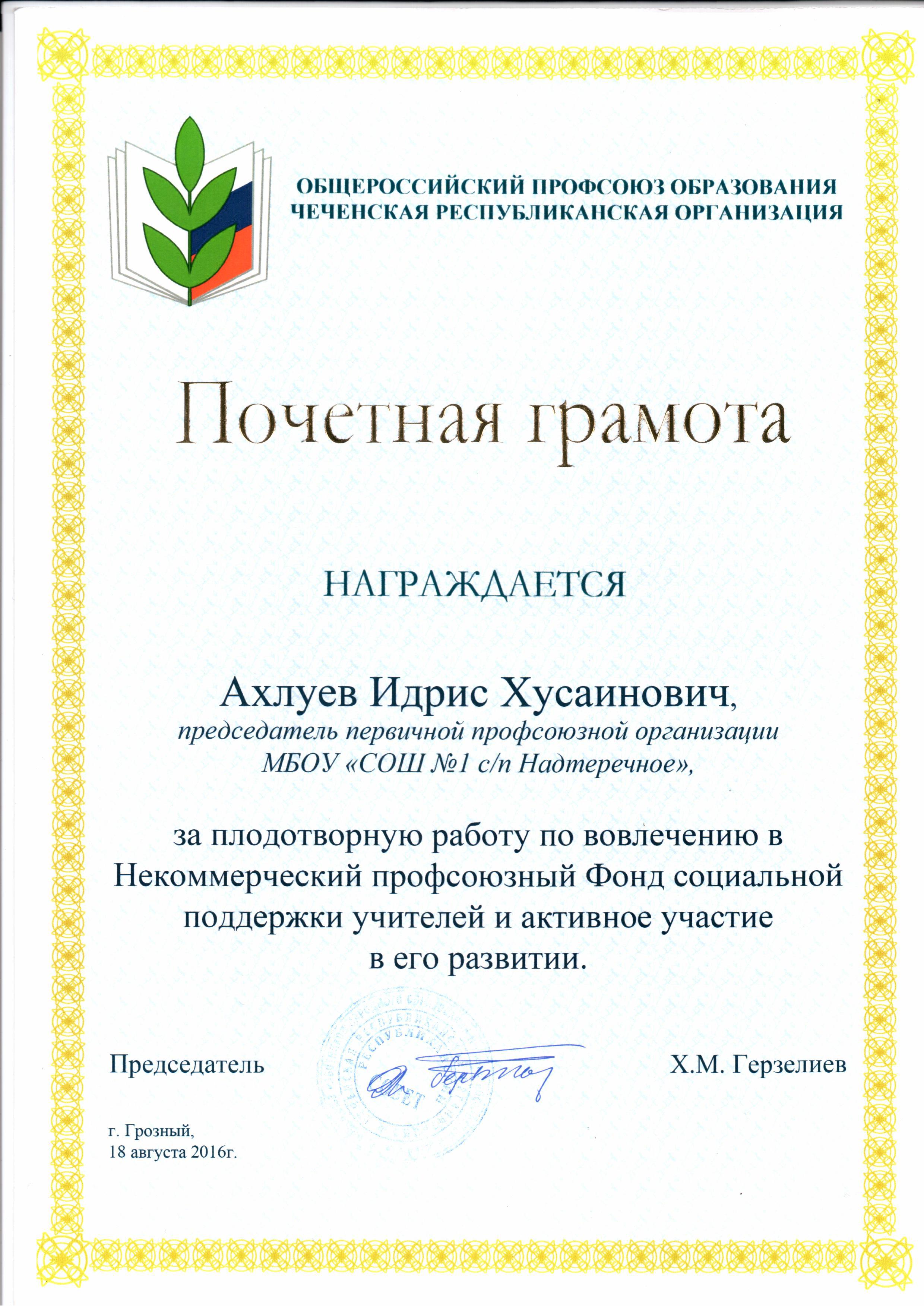 Председатель профкома Ахлуев Идрис Хусенович.