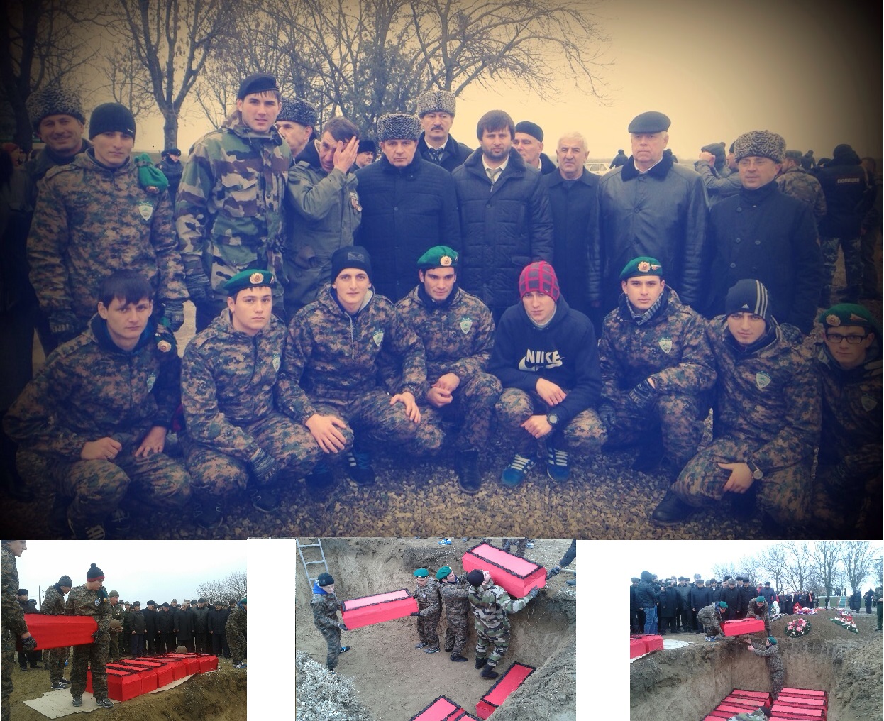 15 декабря в Наурском районе ЧР ст. Ищерская состоялось захоронение останков 32 бойцов Красной Армии найденных в ходе совместных поисковых работ Вахты Памяти от Московского отряда «Архангела Михаила» и поискового отряда «Терек» МБОУ «СОШ № 1 с.п. Надтеречное» им. А.Ш. Мамакаева, под руководством Военно-исторического общества ЧР в лице Абдуллы Алуддинова. В мероприятии по захоронению останков 32 бойцов Красной Армии принял участие председатель парламента ЧР Дукваха Баштаевич Абдурахманов. Во время выступления он подчеркнул значимость результатов поисковых работ. Поблагодарил всех участников Вахты Памяти от лица Главы Республики. Особенно высоко отметил работу поисковых отрядов. Конечным результатом этой работы является присвоение городу Грозный звание города Боевой Славы. Также выступил куратор Северо-Каказского Округа А. Клементьев, который в свою очередь, высоко оценил работу Военно-исторического Общества ЧР и поисковое движение России по увековечиванию памяти павших в защите Отечества, в лице поискового отряда «Терек», руководителем которого является учитель ОБЖ МБОУ «СОШ № 1 с.п. Надтеречное» Дикаев М.Х. Гости пожелали дальнейших успехов в нелегкой, но плодотворной работе отряда «Терек». Мероприятие освещалось центральными и местными СМИ.