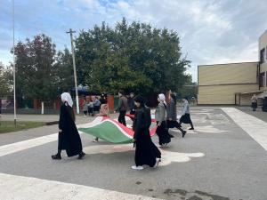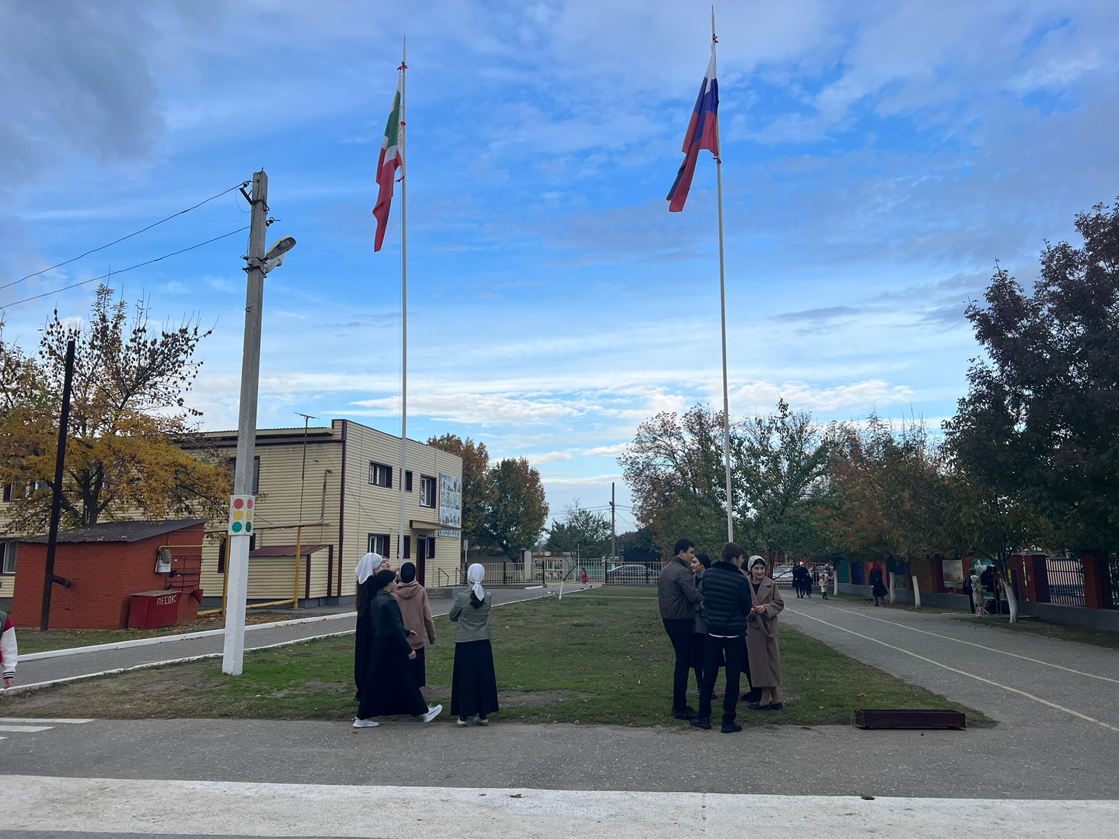 Понедельник начался с Еженедельного поднятия флага Российской Федерации и Чеченской Республики, а также с исполнением гимнов