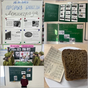 16.01.2023ВНЕУРОЧНОЕ ЗАНЯТИЕ по теме «ПРОРЫВ БЛОКАДЫ ЛЕНИНГРАДА»Цель занятия: формирование гражданско-патриотических ценностей через знакомство с примерами стойкости и героизма жителей блокадного Ленинграда, воспитание уважения к героическим страницам истории России и исторической памяти о подвигах наших предков.
