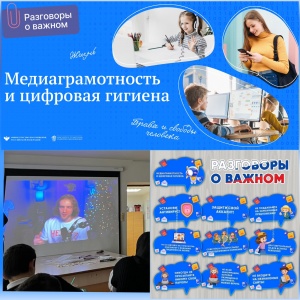 23.01.202323 января прошли ВНЕУРОЧНЫЕ ЗАНЯТИЯ по теме «Медиаграмотность и цифровая гигиена».Цель занятия: формирование культуры безопасного и эффективного использования цифровых ресурсов и устройств, знакомство с основами безопасности в сети и повышение уровня цифровой грамотности.