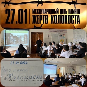 27.01.202327 января– Международный день памяти жертв Холокоста. В этот день люди всего мира склоняют голову перед жертвами варварских акций нацистов. Наш долг– чтить их подвиг, помнить и хранить имена павших героев. В рамках «Недели памяти», посвященной Международному дню жертв Холокоста для учащихся МБОУ «СОШ1 с.п. Надтеречное» учителем истории Дакаевой Л.С.проведен информационный час. Рассказ сопровождался презентацией «Память о Холокосте». Ребята узнали о том, какое место занимает тема концлагерей в истории России и Великой Отечественной войне. Дети своими глазами увидели весь ужас испытаний взрослыми и детьми в лагерях Холокост, Освенцим, Бухенвальд.