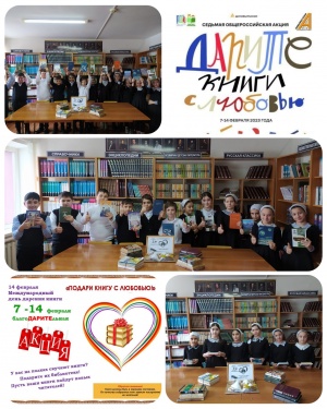 14.02.2023В целях сохранения и пополнения книжного фонда школьной библиотеки и воспитания бережного отношения к книге, с 7 по 14 февраля в МБОУ "СОШ 1 с.п. Надтереное" прошла акция "Дарите книги с любовью" Задачи акции:-привлечение детей к чтению;воспитание патриотизма, чувства ответственности и уважение к школе.Во время проведения акции учащиеся приняли активное участие.Книги приносят пользу, учат доброму и светлому, помогают постичь настоящее искусство и способствует формированию безупречного вкуса.Среди подаренных книг- сказки, учебные пособия, классическая и художественная литература.На личном примере они убедились в том, что основная идея акции, -вдохновлять людей по всему миру дарить детям хорошие книги и показывать что бумажная книга остаётся актуальным подарком и не теряет своей ценности даже в век продвинутых технологий.