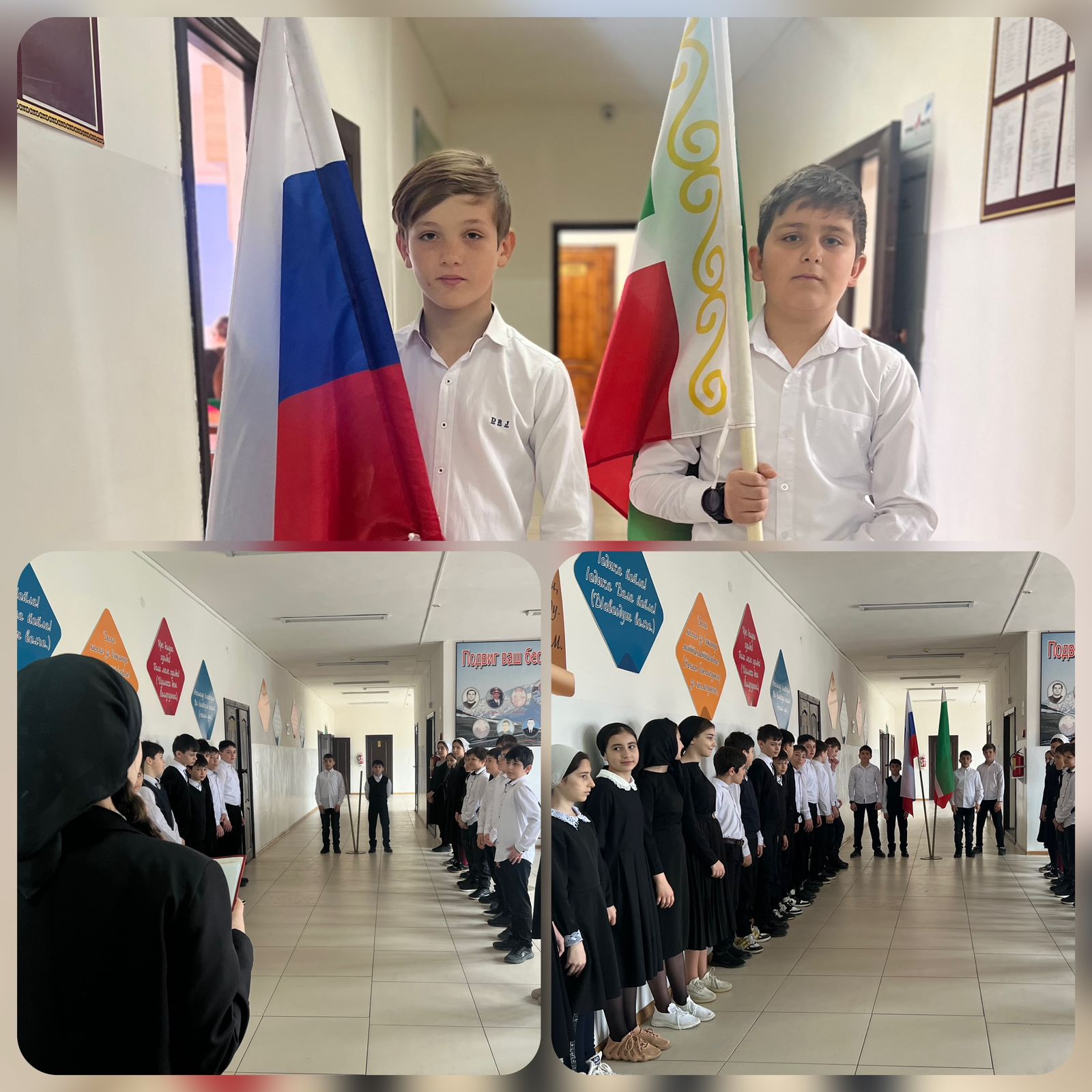 Еженедельная линейка и церемония установки Государственного флага РФ и флага ЧР!