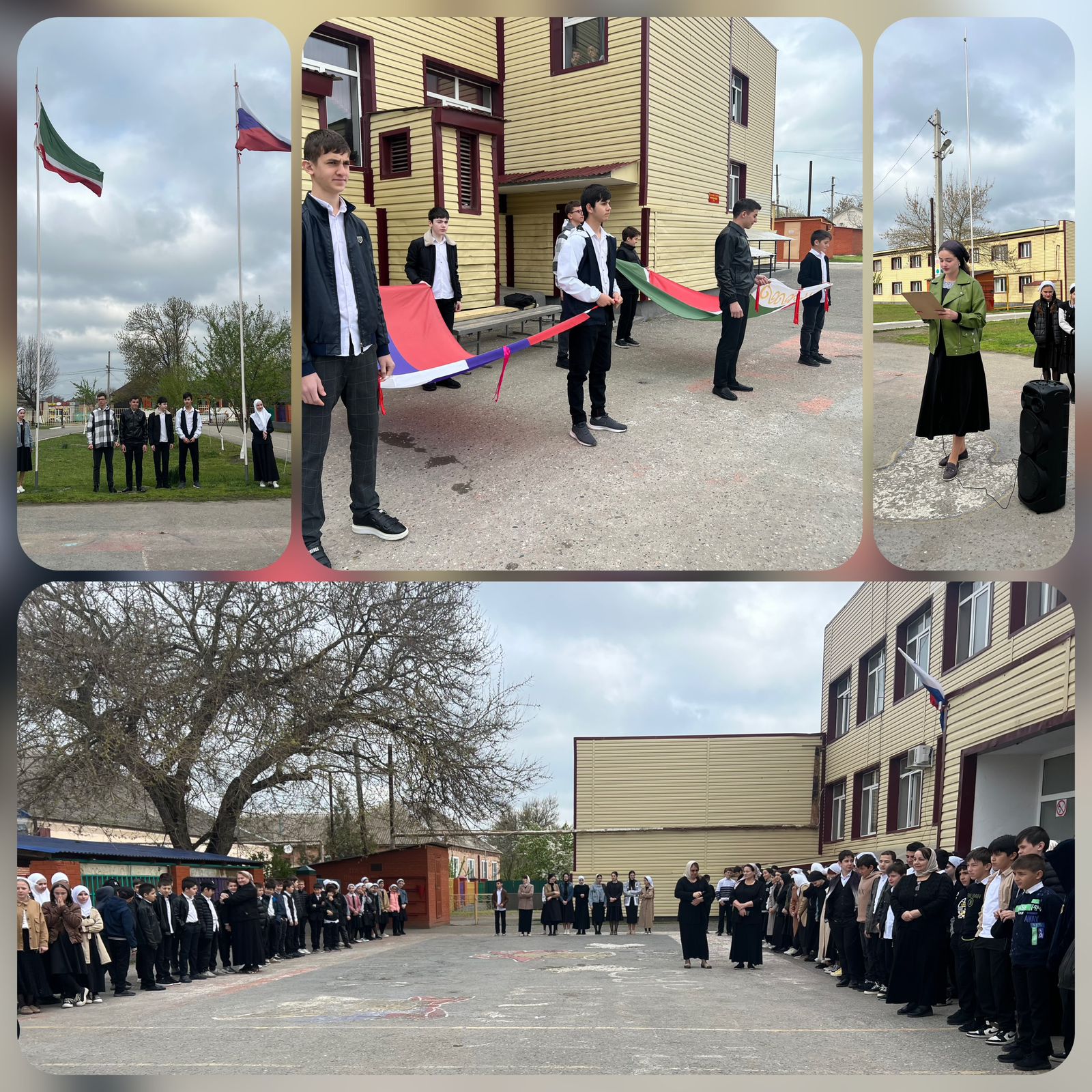 Еженедельная церемония подъема Государственных флагов РФ и ЧР с исполнением государственных гимнов