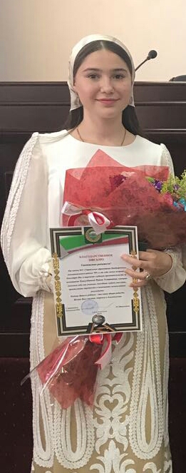 В 2016 году заняла первое место в конкурсе чтецов по школе. И в этом же году заняла первое место в республиканском конкурсе «Дорога к талантам».