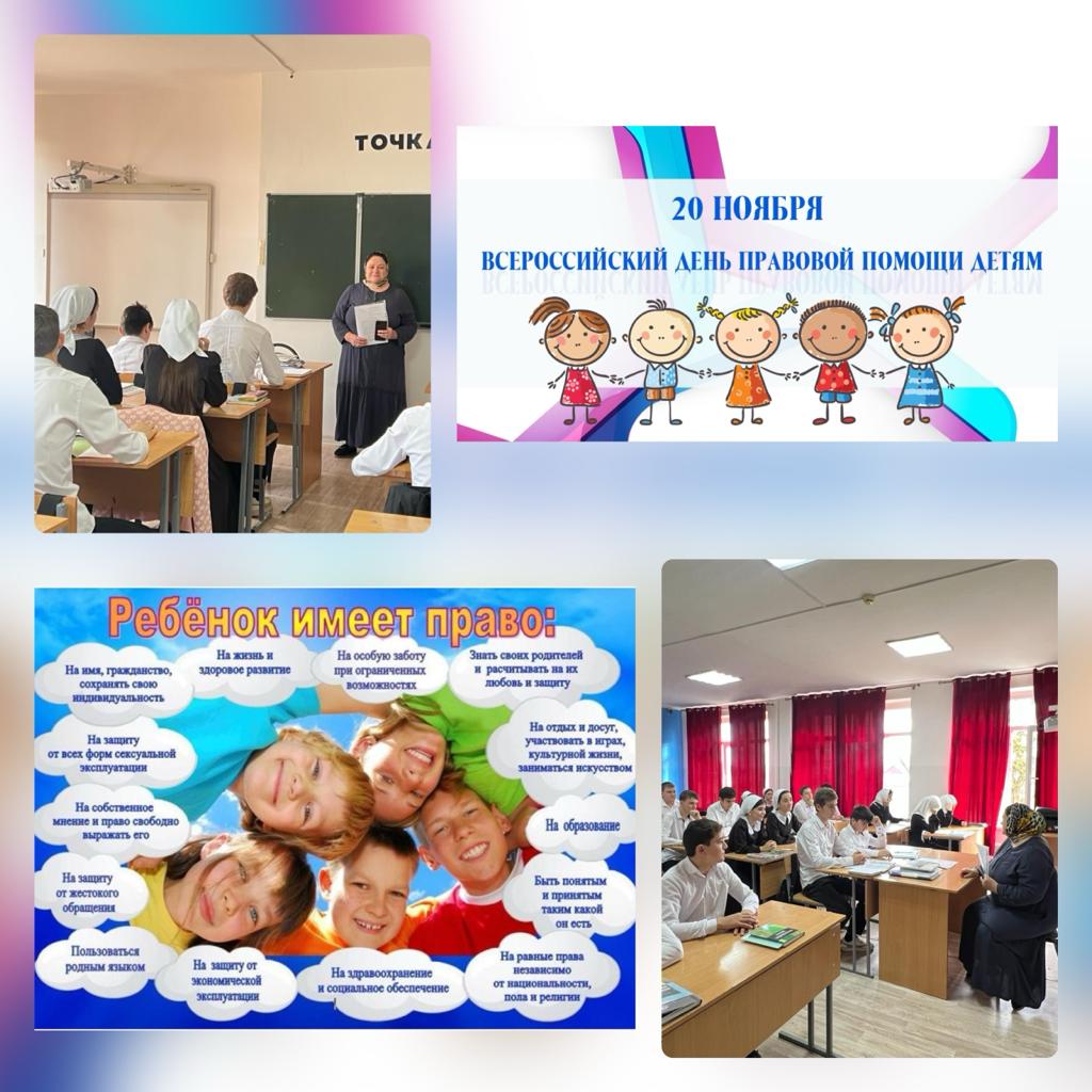 20.11.202320 ноября в школах города прошли мероприятия в рамках Всероссийского дня правовой помощи детям. На уроках, классных часах ребятам рассказали об их правах и обязанностях, уголовной и административной ответственности за совершение противоправных деяний. Информационно-просветительские беседы для обучающихся нашей школы провела Главный специалист ГКУ Государственное юридическое бюро ЧР Мамакаева Зухра Хасановна