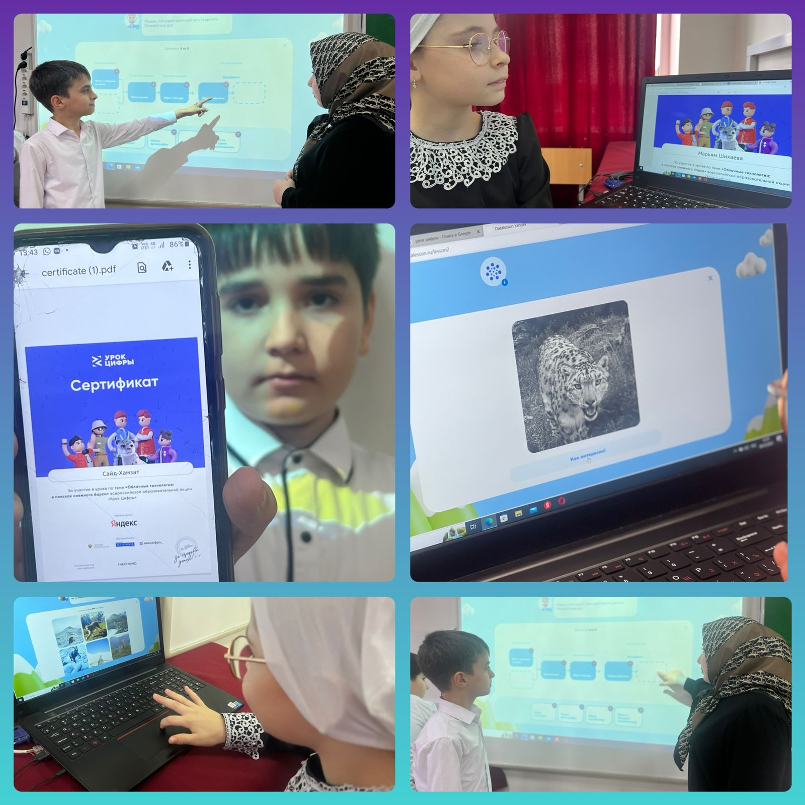 20.11.2023В рамках всероссийского образовательного проекта «Урок Цифры» с 20 ноября в МБОУ «СОШ1 с.п. Надтеречное» прошли уроки по теме «Облачные технологии: в поисках снежного барса». Проект направлен на развитие ключевых компетенций цифровой экономики у школьников, а также их раннюю профориентацию в сфере информационных технологий. Цель Урока - привлечь внимание детей к устройству нейросетей, облачных сервисов и дата-центров и объяснить принципы работы алгоритмов компьютерного зрения, а также показать, как технологии позволяют отличать одно животное от другого и изучать их повадки в дикой природе.