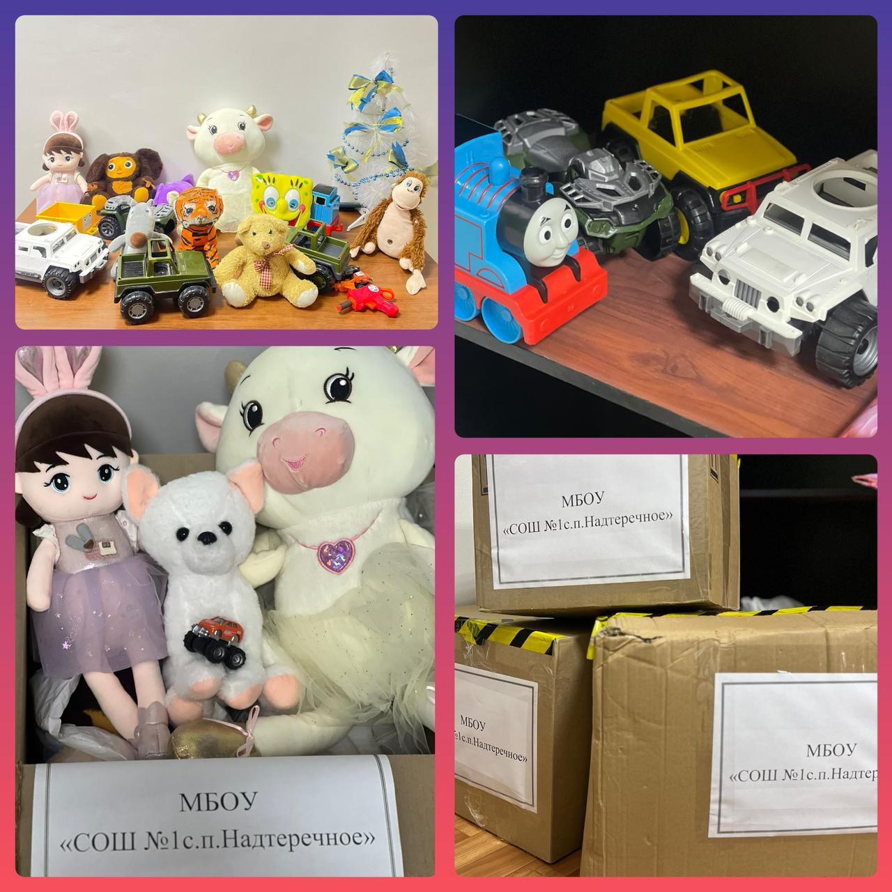 18.12.2023В МБОУ «СОШ1 с.п. Надтеречное» прошла акция « Подари игрушку детям Палестины» . Целью акции является оказание помощи детям, находящимся в трудной жизненной ситуации, в виде игрушек: развивающих игр, конструкторов, мозаики, пазлов, машинок, кукол и других предметов для игр и развлечения.
