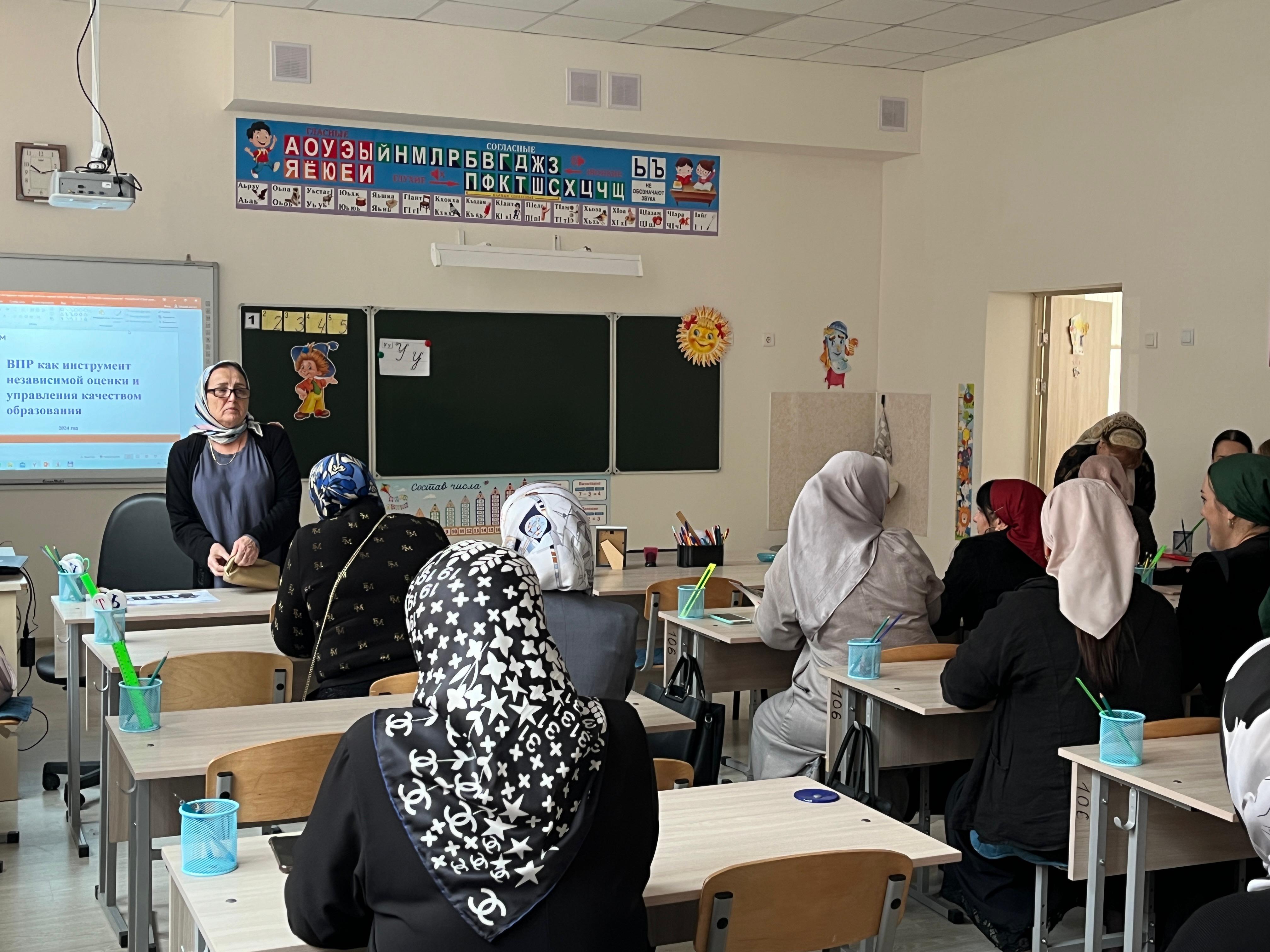 16.09.202412.10.2024 г. на базе МБОУ «Гимназия №10 с.п. Знаменское» региональным методистом по русскому языку Джамбековой М.А. проведен семинар для учителей русского языка и литературы общеобразовательных учреждений Надтеречного муниципального района на тему "ВПР как инструмент независимой оценки и управления качеством образования." Участники семинара познакомились с ВПР 2024 года. Рассмотрены также типичные ошибки, допущенные в проверочных работах 2024 года. Проведён сопоставительный анализ предметных результатов из Описания КИМ по русскому языку с планируемыми предметными результатами Рабочей программы, а также разбор демоверсии ВПР 2025 года по русскому языку за 5 класс 2024г. Дан методический разбор сложных заданий (тем) по итогам ГИА -2024"