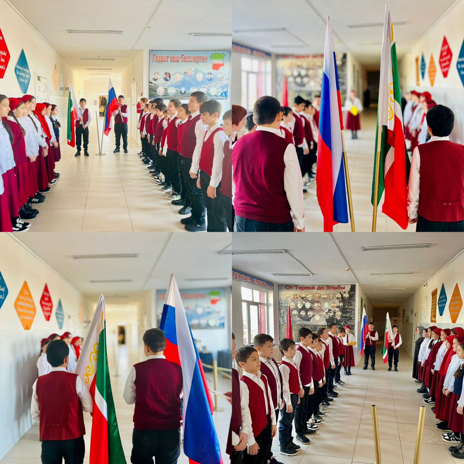 16.12.2024Учебная неделя в МБОУ «СОШ N°1 с.п.Надтеречное» началась с торжественной церемонии установки Государственных флагов Российской Федерации и ЧеченскойРеспублики под Государственные гимны.Почетное право предоставили обучающимся 5 «В» класса.