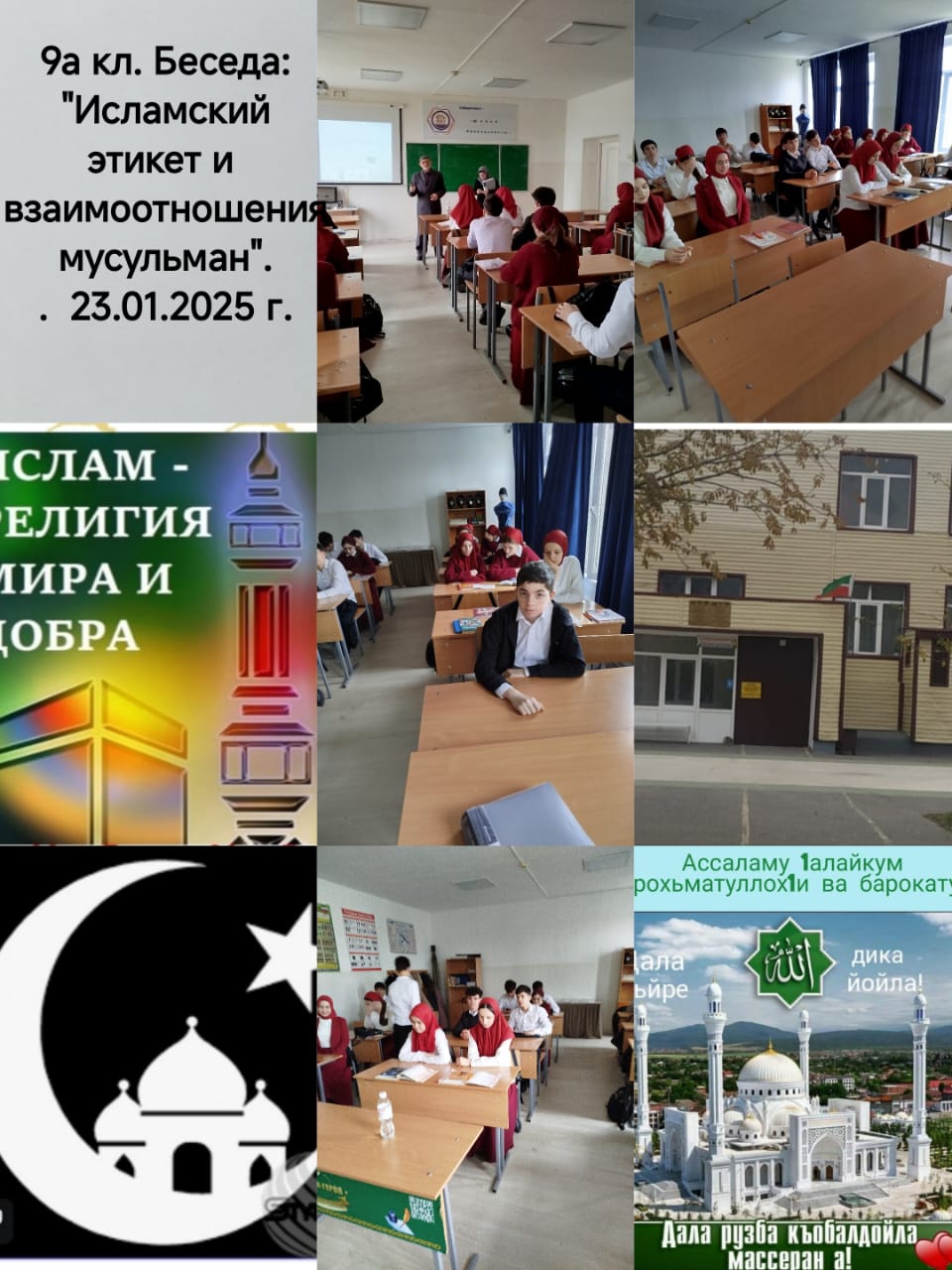 23.01.2025Педагогом-организатором ДНВ Дакаевым А.М. проведена беседа в 9 классе на тему «Исламский этикет и взаимоотношения мусульман»