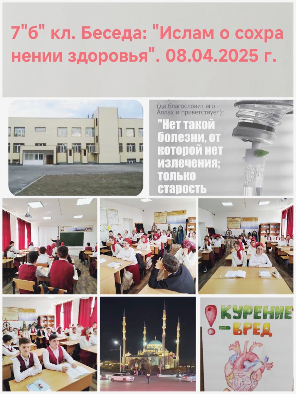 10.04.2025Педагогом-организатором по ДНВ Дакаевым А.М. проведена беседа в 7Б классе на тему сохранения здоровья. В ходе беседы были затронуты ключевые аспекты, касающиеся физического и психического благополучия подростков.Обсуждались вопросы правильного питания, режима дня и достаточной физической активности. Особое внимание было уделено профилактике вредных привычек, таких как курение и употребление алкоголя, и их негативному влиянию на растущий организм.Также рассматривались вопросы личной гигиены и поддержания чистоты. В заключение беседы ученикам было предложено задавать вопросы, на которые были даны развернутые ответы. Мероприятие способствовало повышению осведомленности учащихся о важности заботы о своем здоровье и формированию ответственного отношения к нему.