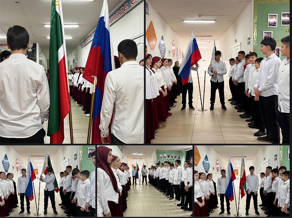 10.11.2025Учебная неделя в МБОУ "СОШ №1 с.п. Надтеречное" началась с торжественной церемонии установки Государственных флагов Российской Федерации и Чеченской Республики под Государственные гимны. Почетное право предоставили обучающимся 8 "А" класса.