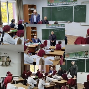 14.11.202514.11.2025 г. в МБОУ "СОШ №1 с.п. Надтеречное" в целях реализации Единой Концепции духовно-нравственного воспитания подрастающего поколения состоялась встреча членов совета старейшин села Дениева С. и Махтиева Х. с обучающимися. Гости в своих выступлениях говорили о соблюдении традиций и обычаев чеченцев, об этических нормах поведения в повседневной жизни. Педагог-организатор ДНВиР Дакаев А. говорил о нравственных ценностях ислама, значимости намаза. В конце мероприятия совместно с обучающимися прочитали суру Корана "аль-Ихлас".