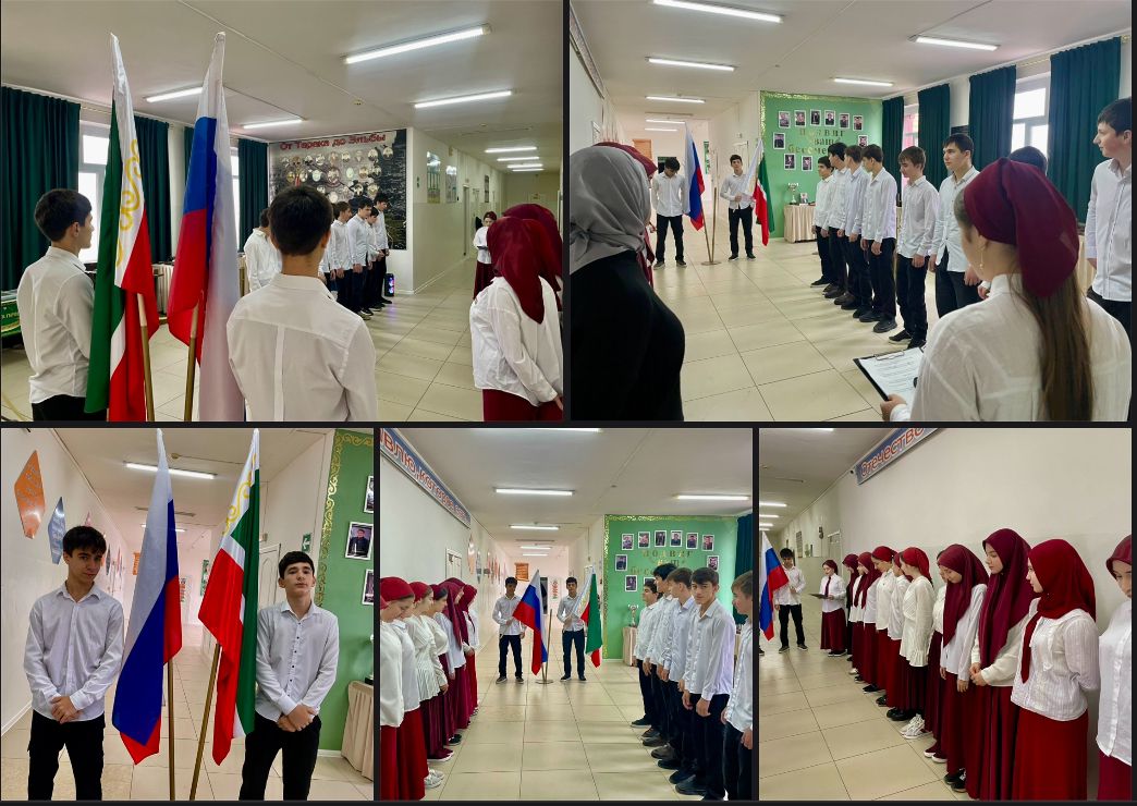24.11.2025Учебная неделя в МБОУ "СОШ №1 с.п. Надтеречное" началась с торжественной церемонии установки Государственных флагов Российской Федерации и Чеченской Республики под Государственные гимны. Почетное право предоставили обучающимся 9"Б" класса.