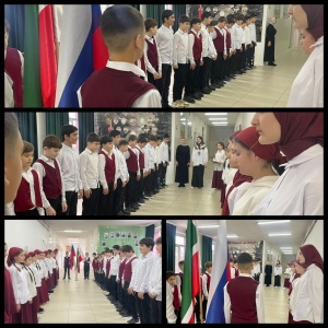 12.01.2026Учебная неделя в МБОУ "СОШ №1 с.п. Надтеречное" началась с торжественной церемонии установки Государственных флагов Российской Федерации и Чеченской Республики под Государственные гимны. Почетное право предоставили обучающимся 5 "в" класса