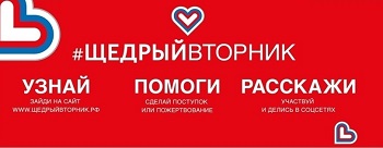 20.11.201827 ноября 2018 года пройдет акция #ЩедрыйВторник. Акция приурочена ко Всемирному дню благотворительности и проходит каждый последний вторник ноября. Основная цель мероприятия - дать новый импульс развитию культуры благотворительности и вовлечь как можно больше людей в добрые дела.