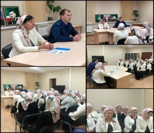 08.12.2018Во исполнение указания прокурора республики Шарпудди Абдул-Кадырова в преддверии Международного дня борьбы с коррупцией, сотрудниками прокуратуры Надтеречного района ЧР проведена встреча с работниками ГУ УПФ РФ в Надтеречном районе