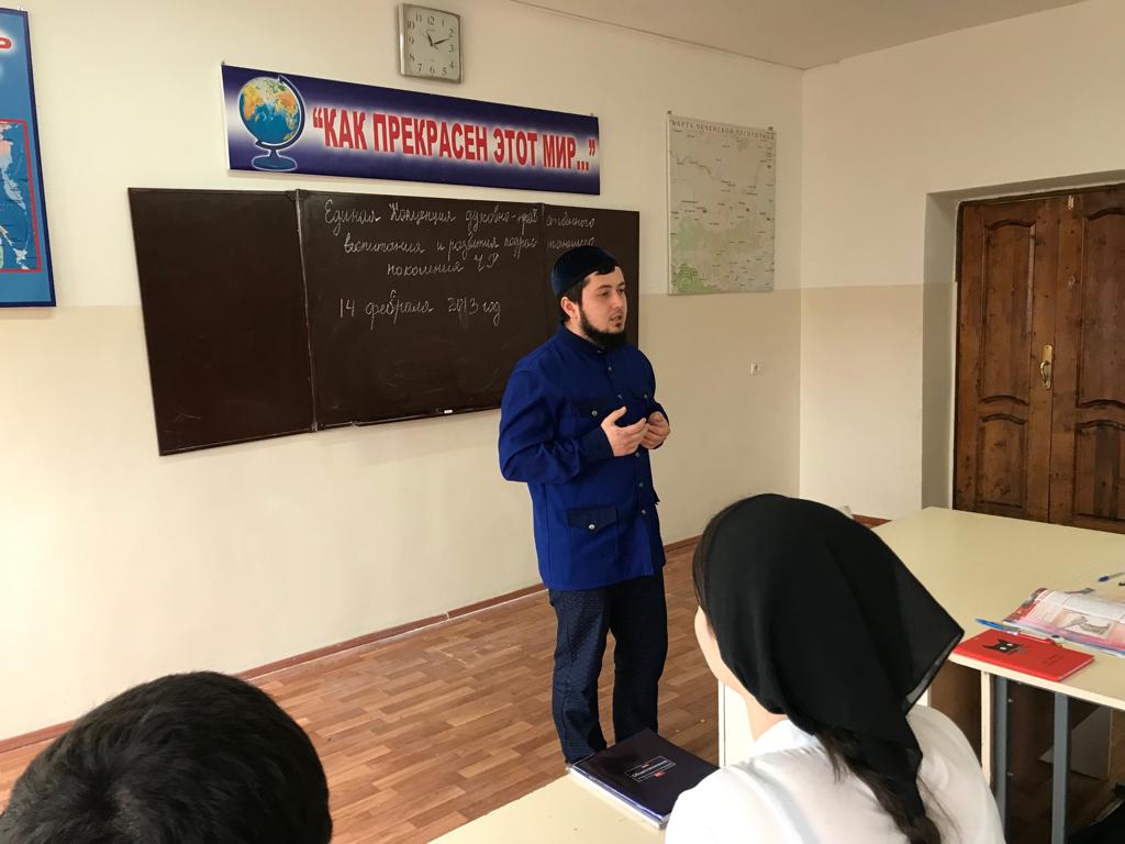 Махтиев Ахмар Альвиевич, педагог по ДНВР, провел беседу с учащимися 9-х - 11-х классов на тему "Единая Концепция Духовно-нравственного воспитания".